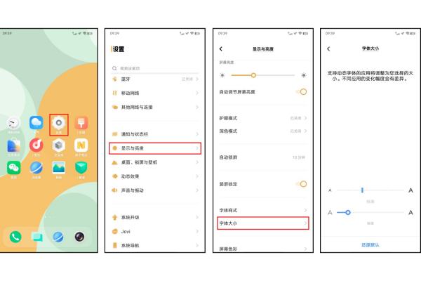 1、OriginOS/iQOO UI 和 Funtouch OS 4.0及以上系统:进入设置--显示与亮度--字体大小/字体大小与粗细--可左右拖动指示条调节字体大小