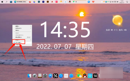 1.点击显示设置:打开电脑,进入电脑主界面,在电脑桌面上,点击鼠标右键,便会弹出一个选项框,在选项框中选择下方的显示设置选项。