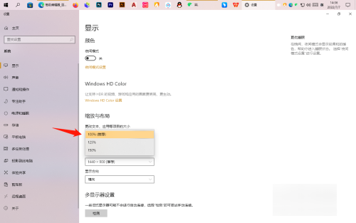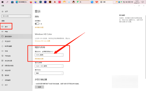 2.缩放与布局:进入显示设置界面后,点击显示,点击缩放与布局下第一栏,选择字体大小即可。