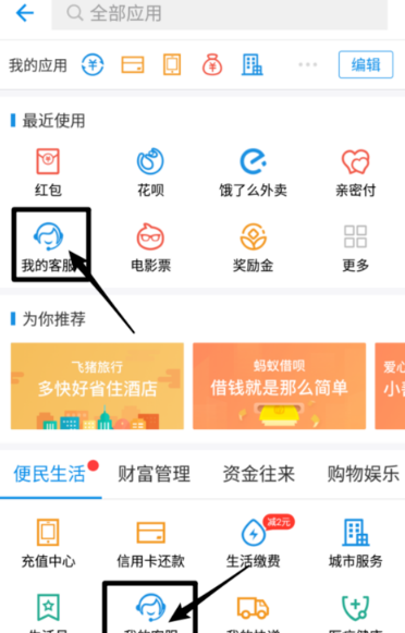 2、在更多功能里找到【我的客服】(在便民生活里面)并点击,如下图所示。