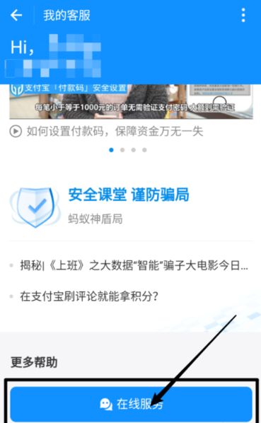 3、往下拉倒底找到【在线客服】的选项,如下图所示。
