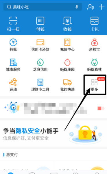 1、打开支付宝,点击进入【更多】的选项,如下图所示。