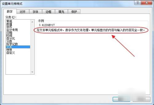3、在打开的单元格格式窗口中,将单元格格式选择为文本,然后点击下面的确定即可:
