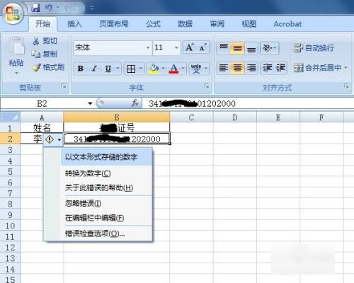 方法一 1、先打开Excel,然后输入你的身份证后,就会是这样的情况; 2、然后,右键单击身份证的单元格,再点击“设置单元格格式” 3、选择“数字”---“文本”点击确定就行了 4、然后双击身份证号码所在的单元格,即可显示完全的身份证号码 方法二 1、输入身份证号时出现错误 2、选中身份证号表格 3、在开始菜单里点击如图所示地方 4、选择文本 5、出现这个小绿标之后身份证号就可以正常输入了 方法三 1、在输入身份证号之前,在表格中输入一个逗号,再输入身份证号,也可以解决显示错误的问题。excel表格中输入身份证号码显示不完全