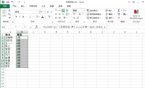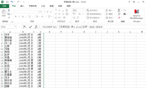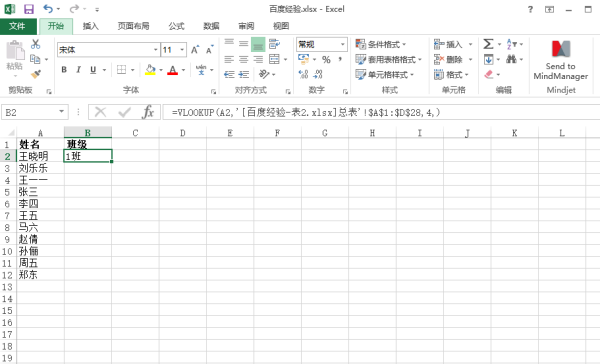 2、需要在另一个表中匹配出相应同学的班级信息。