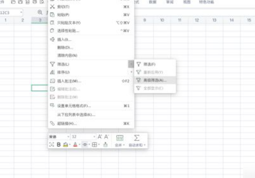 3、然后选中要进行筛选的数据表格,右键选择筛选,然后选择高级筛选。