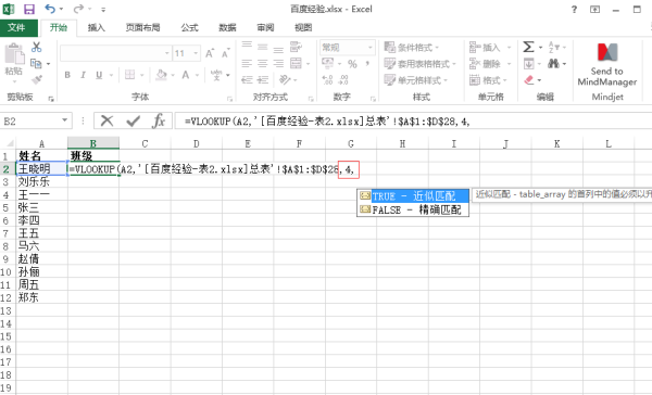 8、因为我们要返回的是中第四列的班级信息,所以在公式中再输入“4,”(逗号是英文的)。