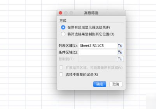 5、接下来,我们在“高级筛选”对话框中把另外一个表格中相应的单元格区域设置为“条件区域”,最后点击“确定”按钮。