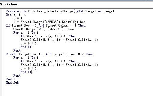 IfSheet1.Cells(a,1)<10Then'这个里面改A1的筛选条件。
