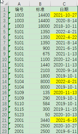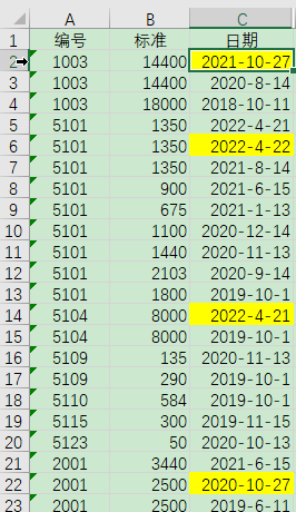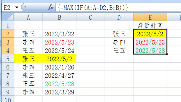 电子表格中同一个名字对应不同的时间,如何查找最近的时间?