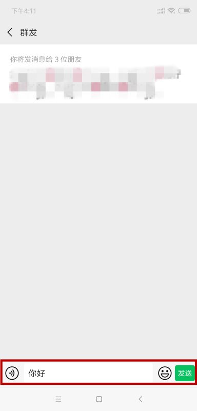 8、第八步,执行完上面的操作之后,在下面的编辑框中输入所需的组文本,然后在确认后单击“发送”按钮,见下图,转到下面的步骤。