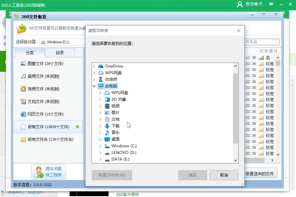 可以使用360的文件恢复工具进行恢复,具体操作步骤如下: