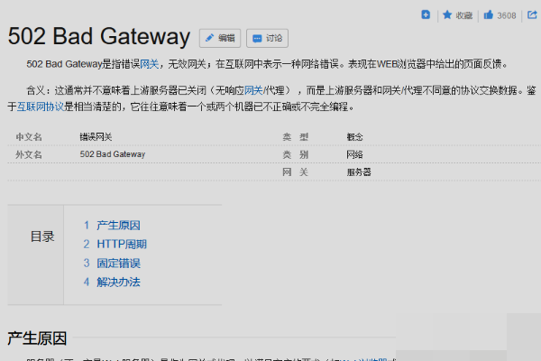 1、502 Bad Gateway错误的原因是网站到客户端的链路网关路由异常。