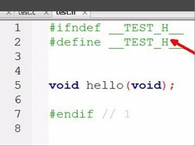 4、第四步,完成上述步骤后,头文件名的大写字母写在#ifndef之后,例如:test.h应该写为__TEST_H__,见下图,转到下面的步骤。