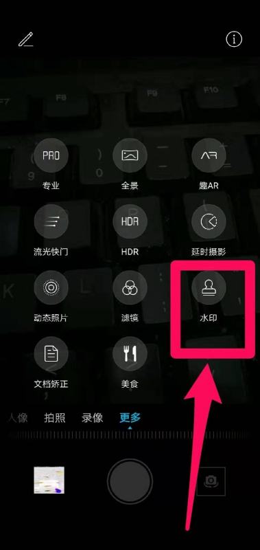 3、进入到更多的选项里面就会看到有水印的选项,点击选择。