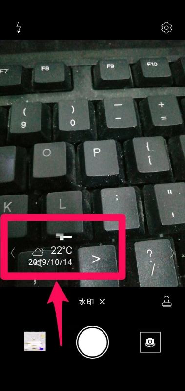 4、然后使用相机拍照,就可以是带有水印的效果了。