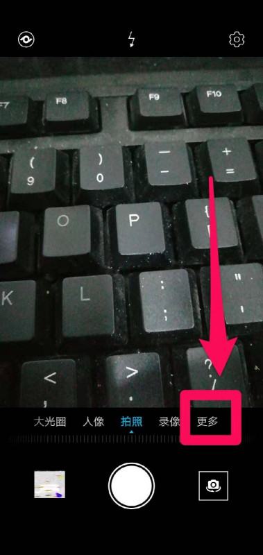2.进入相机界面,点击界面顶部的更多选项进入。