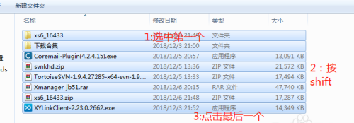 操作2:文件夹中有多个文件,选中第一个,然后按照shift,点击最后一个,实现全部选中