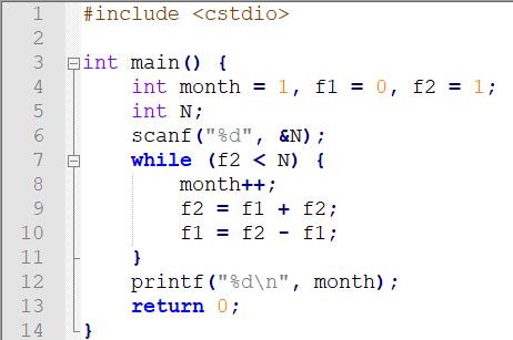 每个月的对数是1 1 2 3 5 8 13 21 .....