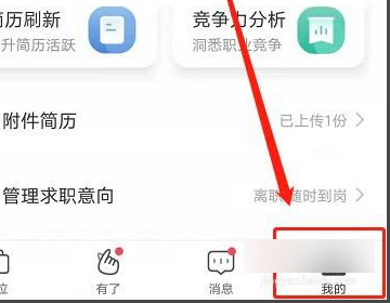1、打开Boss直聘,选择下方功能栏目中的“我的”;