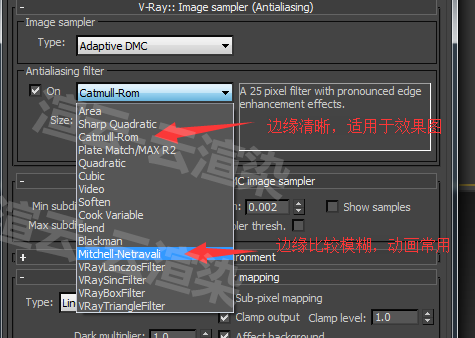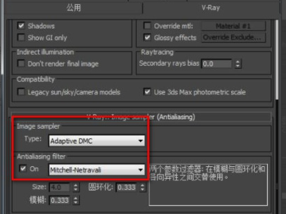 3、在我们测试vray渲染的时候,注意要在Image sampler (Antialising)下,选择Fixed,而如果在正式渲染下注意选择Adaptive DMC。