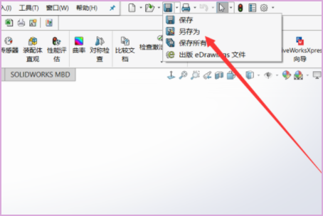 2、然后打开文件夹图标后面的倒三角形,选择打开“另存为”。