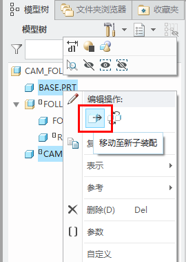 2、如果需要新建子装配,可以将几个单独的零件选中后,在鼠标右键菜单中选择“移动至新子装配”指令。