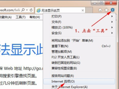 1、点击“工具”图标或菜单,并在弹出的菜单栏中点击“Internet选项"菜单。