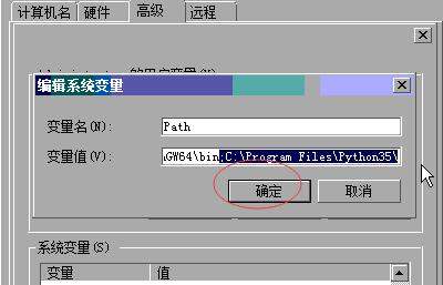 7)在变量值末尾添加;C:\Program Files\Python35\,就是你python安装的目录,注意如果原来末尾没有分号要添加一个分号。然后点确定,再把之前的对话框也确定。