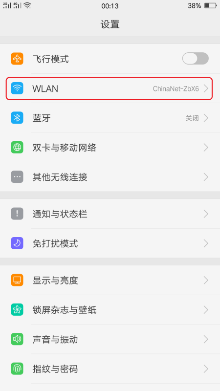 二、进入设置以后,选择“WLAN”选项。