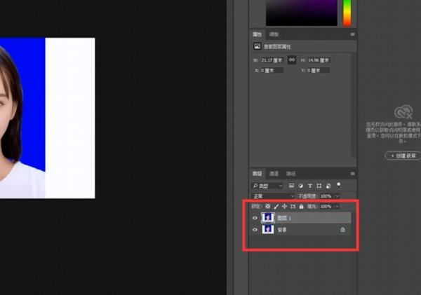 4、Ctrl+D清除选区,新建图层,填充证件照背景颜色,调整图层顺序即可。