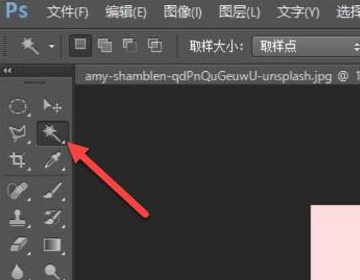 2、用魔棒工具选择图片后,点击Delete,删除图片背景色。