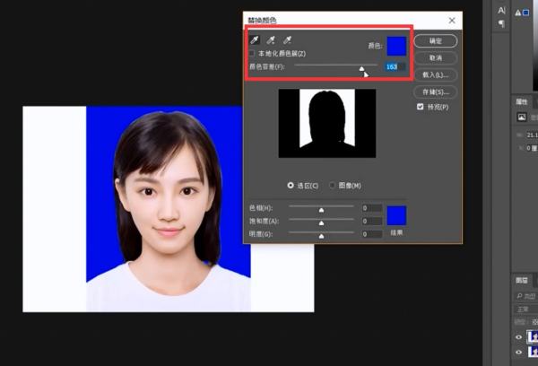 四、用吸管工具吸取背景色,将容差植调到最大。