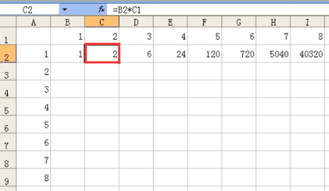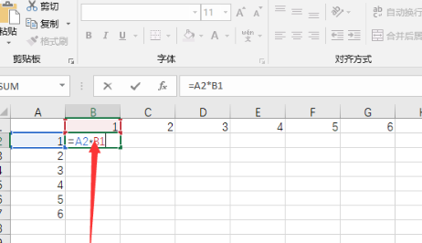3、这时就要使用绝对引用,将第一个的公式改为=$A2*B1即可。