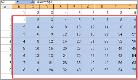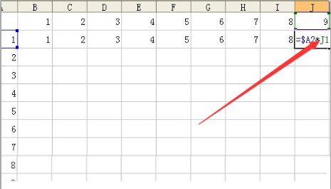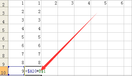 5、这时还要使用绝对引用,将第一个的公式改为=$A2*B$1即可。
