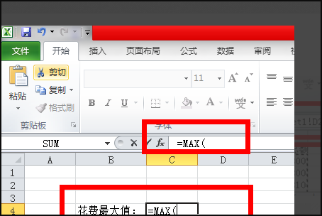2、然后打开另一个Excel表格,点击需要数据的单元格输入公式“=MAX(”。