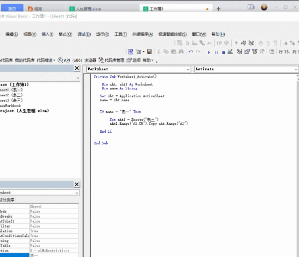 使用工作表事件,当工作表激活的时候,判断工作表的名字,如果目标工作薄,则进行复制