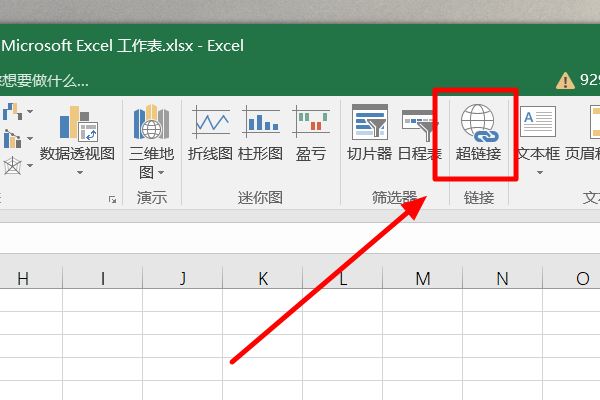 2,放好之后,打开Excel文件,点击上方插入选项卡下面的“超链接”一项。