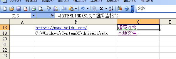1、创建超级连接访问网页,输入函数=HYPERLINK(B18,"超级连接"),B18单元格中输入网址。