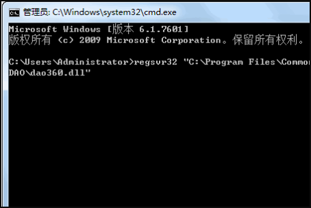 3、接下来还可以再输入regsvr32 "C:\Program Files\Common Files\Microsoft Shared\DAO\dao360.dll",点回车就行了,注意包含引号。