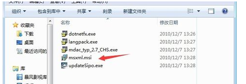 2、接下来找出安装包,找到environment文件夹中的msxml.msi文件,然后双击运行文件。