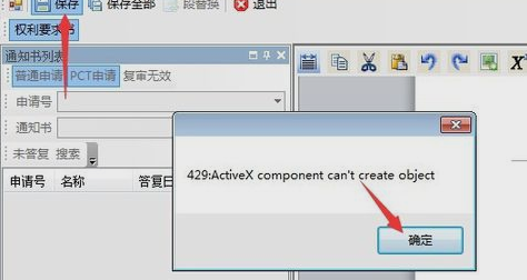 1、使用CPC客户端保存文件时提示“429:ActiveX部件不能创建对象”,如图.