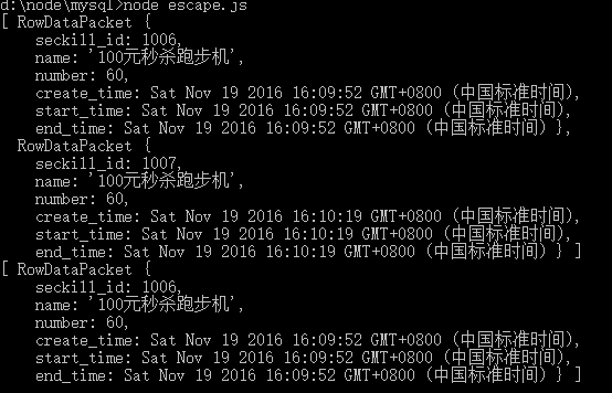 - myQuery('SELECT * FROM seckill WHERE seckill_id = ' + pool.escape('1006 OR seckill_id = 1007'));123456789101112131415161718192021222324252627282930313233343536373839404142434445464748