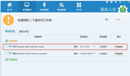 2、这时候自己下载声卡驱动安装,或者使用驱动精灵、驱动人生等工具安装最新声卡驱动。