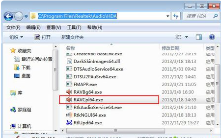 2、如果控制面板没有管理器选项,则进入C:\Program Files\Realtek\Audio\HAD目录,双击打开RAVCpl64.exe;