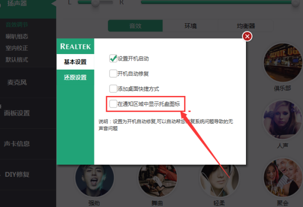 1、REALTEK装好后,在电脑桌面右下角,双击可以打开管理界面。
