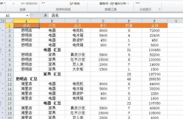 电子表格的同名求和,分类汇总之后筛选,怎么数据全部变成0了。
