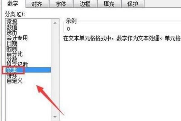 4、点击设置单元格格式选项在弹出的对话框内设置为文本