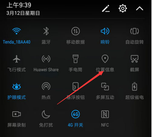 5、现在开始设置第二项,关闭卫星和网络定位,这个容易设置,滑下快捷菜单,可以看到里面有个位置信息,点击关闭位置信息。