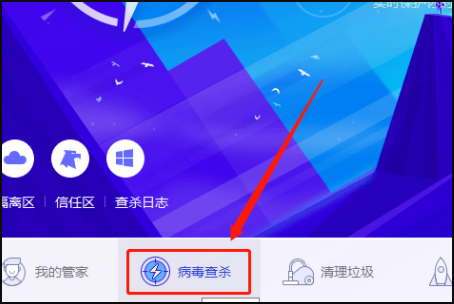 1、打开电脑管家,在下边有个闪电的图标加文字“病毒查杀”。